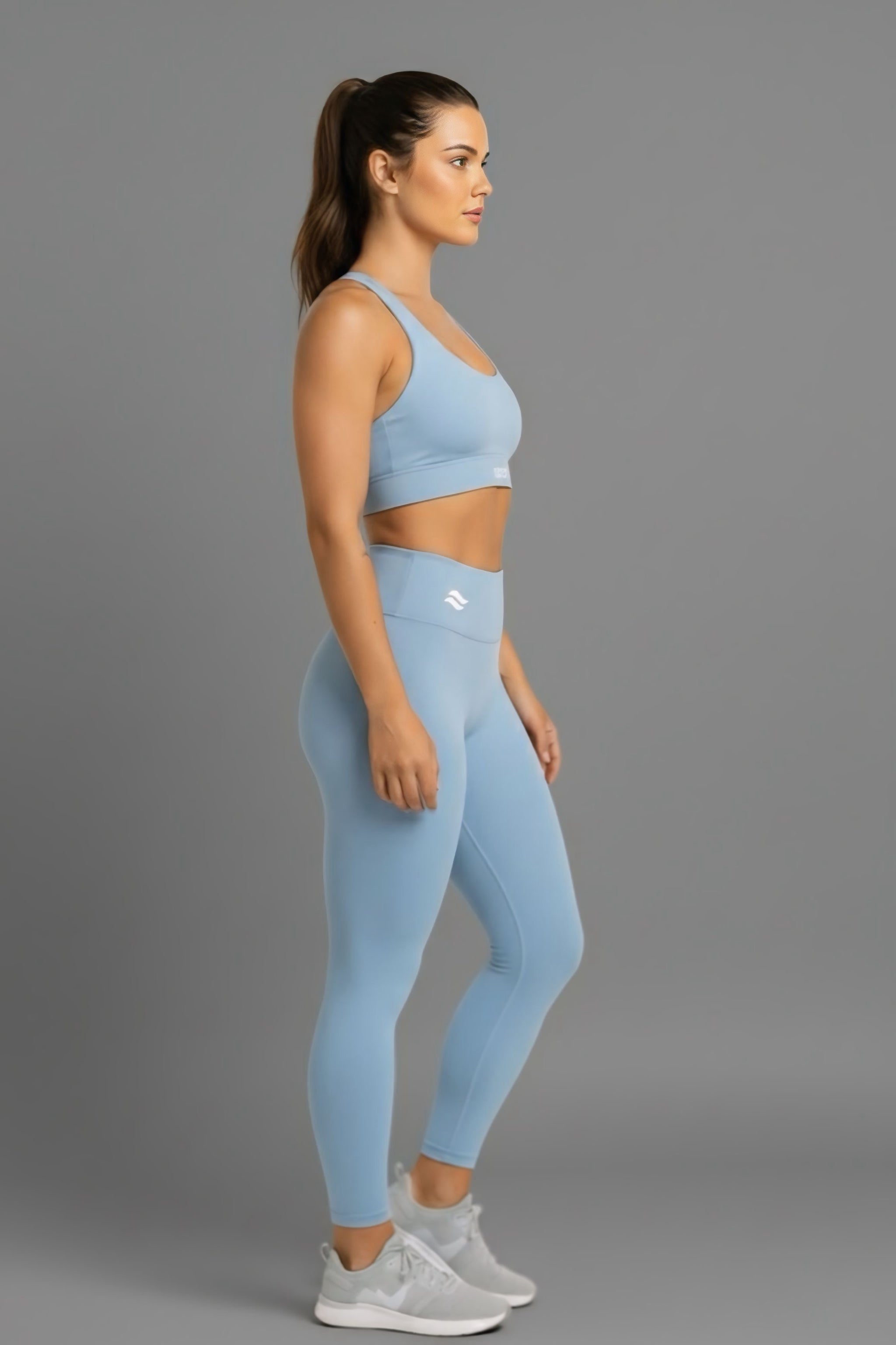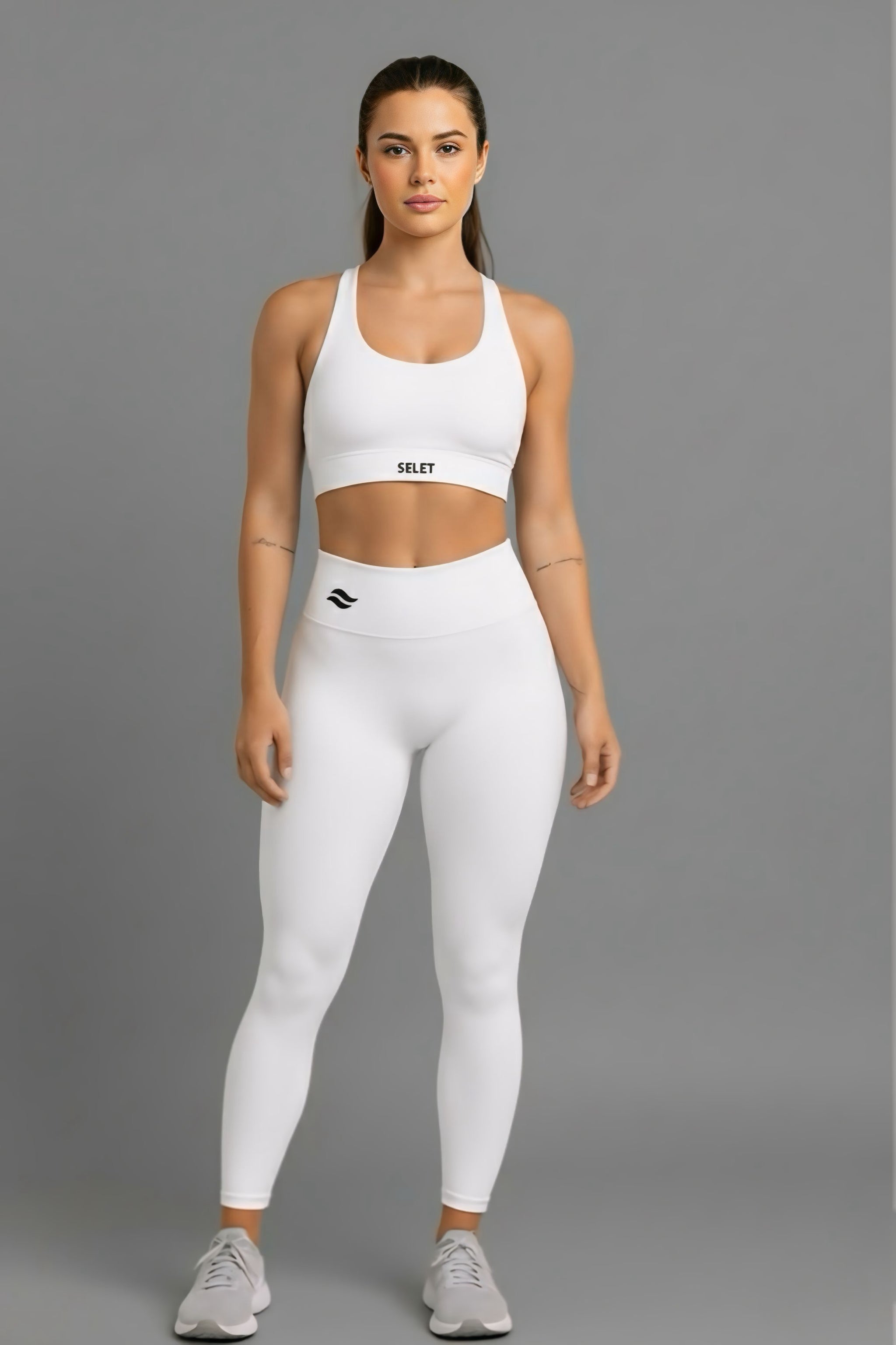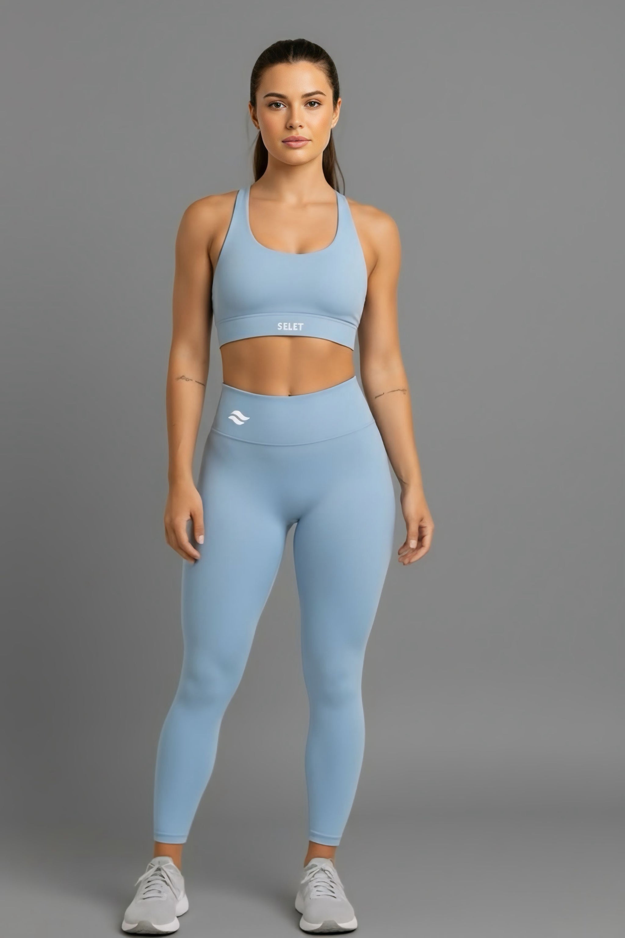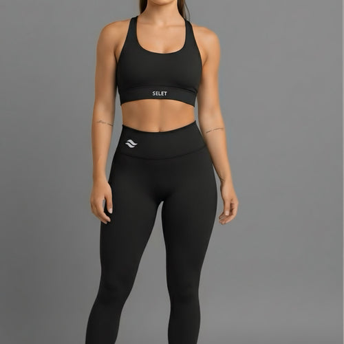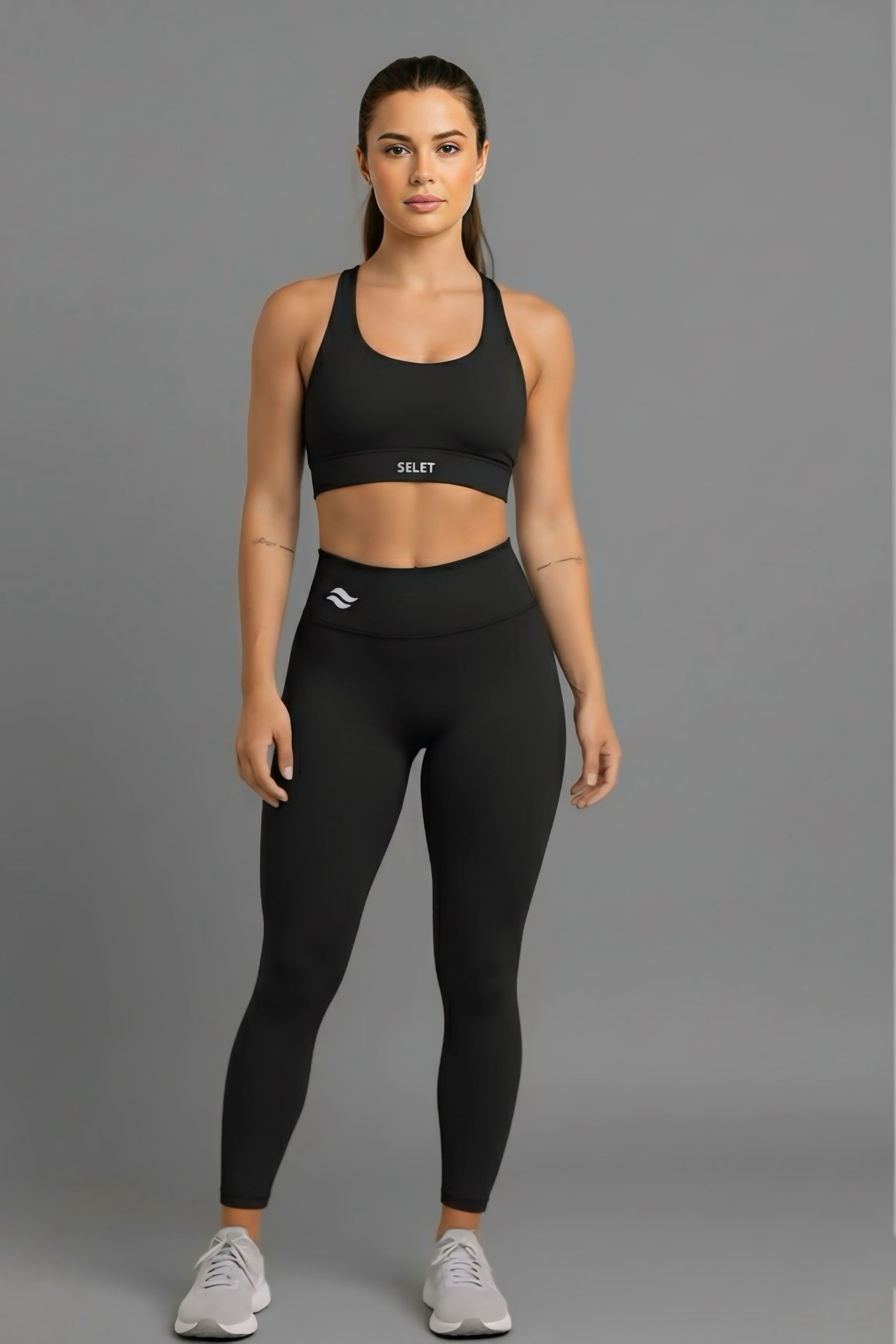 O top oferece firmeza sem restringir, enquanto a legging tem cintura alta e ajuste preciso, proporcionando liberdade total em cada treino ou rotina diária.